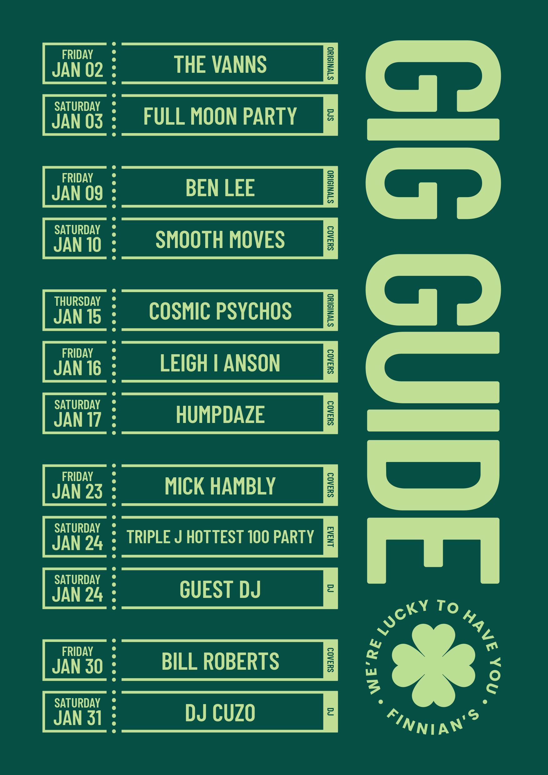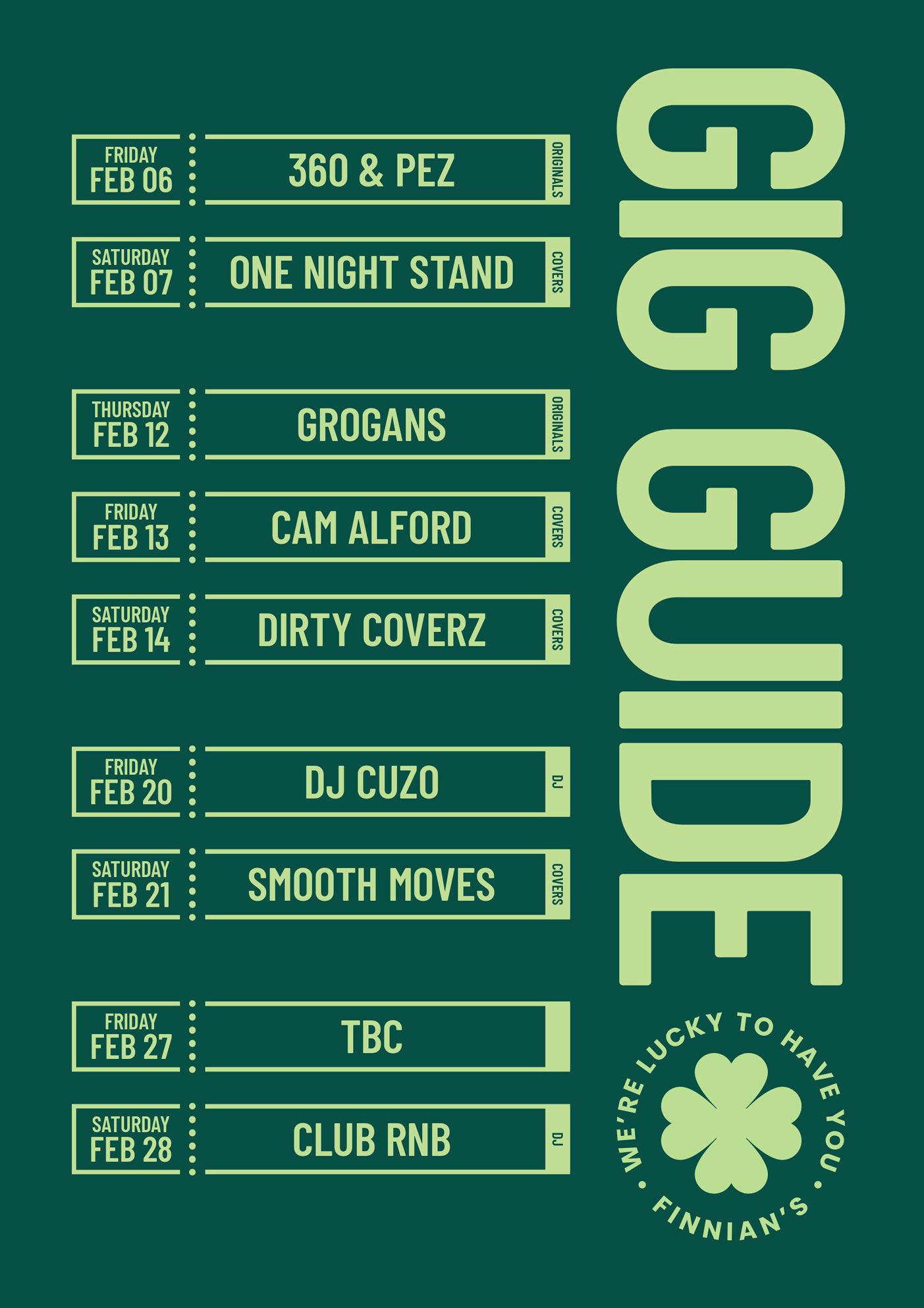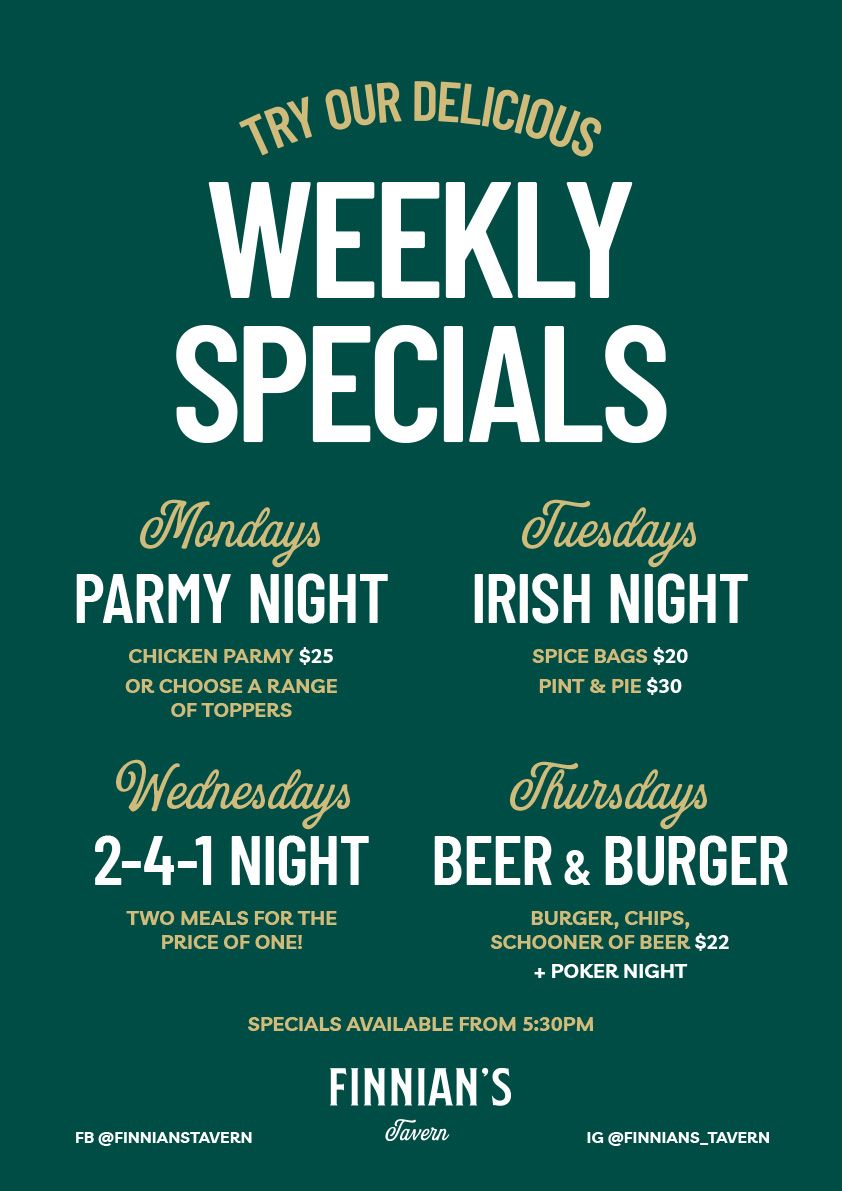 What’s On at Finnian’s Tavern